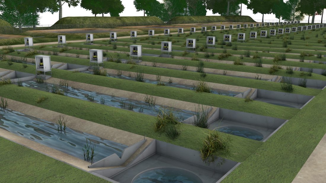 We are glad to be now working with Fera Science Limited on producing a 3D Animation detailing their new E-Flows Facility, the largest mesocosm in Europe. The project consisted of working with the plans to build a 3D environment of the site and all the different elements with in it such as the 60 flow streams, water ageing lagoons, water treatment facility and wetland area.